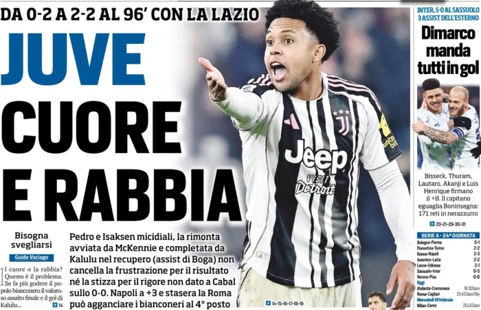 【採点】 2025/26 セリエA第24節 ユベントス対ラツィオ